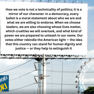 By Melanie Nathan, Nov. 03 How we vote is not a technicality of politics; it is a mirror of our character. In a democracy, every ballot is a moral statement about who we are and what we are willing to endorse. When we choose leaders, we are also choosing whose lives matter, which cruelties we … More On Our Way to Voting Booth – Who we Vote for is WHO WE ARE!