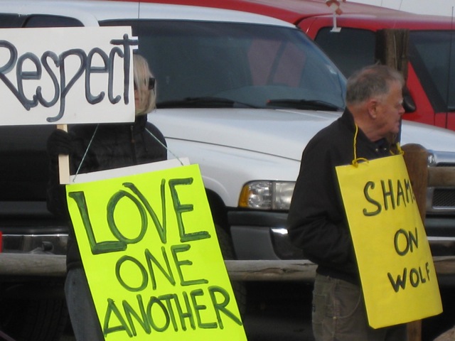A gentleman showed up on Monday before this protest, at first scaring me to death, bye when he walked up to me closely, said “Thanks”. I invited him to join us on Saturday. Much to my delight not only did he show up, but he stayed for hours. Come to find out, he canvassed for the Obama campaign, and told me of his adventures.