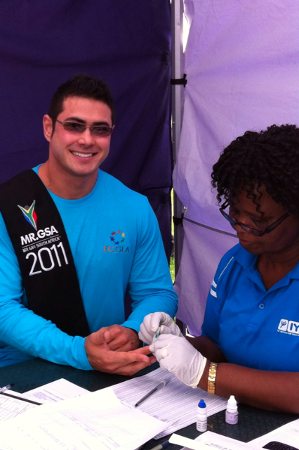 While activist and recent contest winner, Mr. Gay South Africa 2011, Lance Weyer (24), was publicly tested for HIV at the South African National World AIDS Day Commemoration Event at KwaZakhele in the Eastern Cape, hundreds of people were gathered in the National Aids Memorial Grove in San Francisco’s Golden Gate Park.