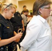 Mary Jamis, 52, of Mocksville, and a heterosexual friend who joined the protest, Mary Lea Bradford of Winston-Salem, were arrested after they blocked the entrance to the marriage license office and refused to leave more than 30 minutes after closing time.