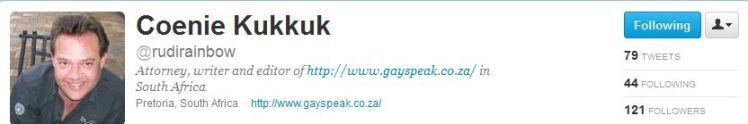 Coenie Kukkuk I know You are Rudirainbow. – How cowardly of you. Surely you can put your name behind your words especially seeing this article involves you. What do you have to hide? LOL really!!