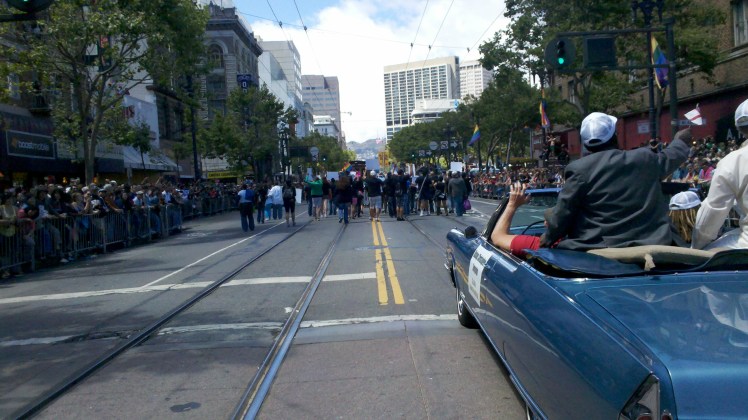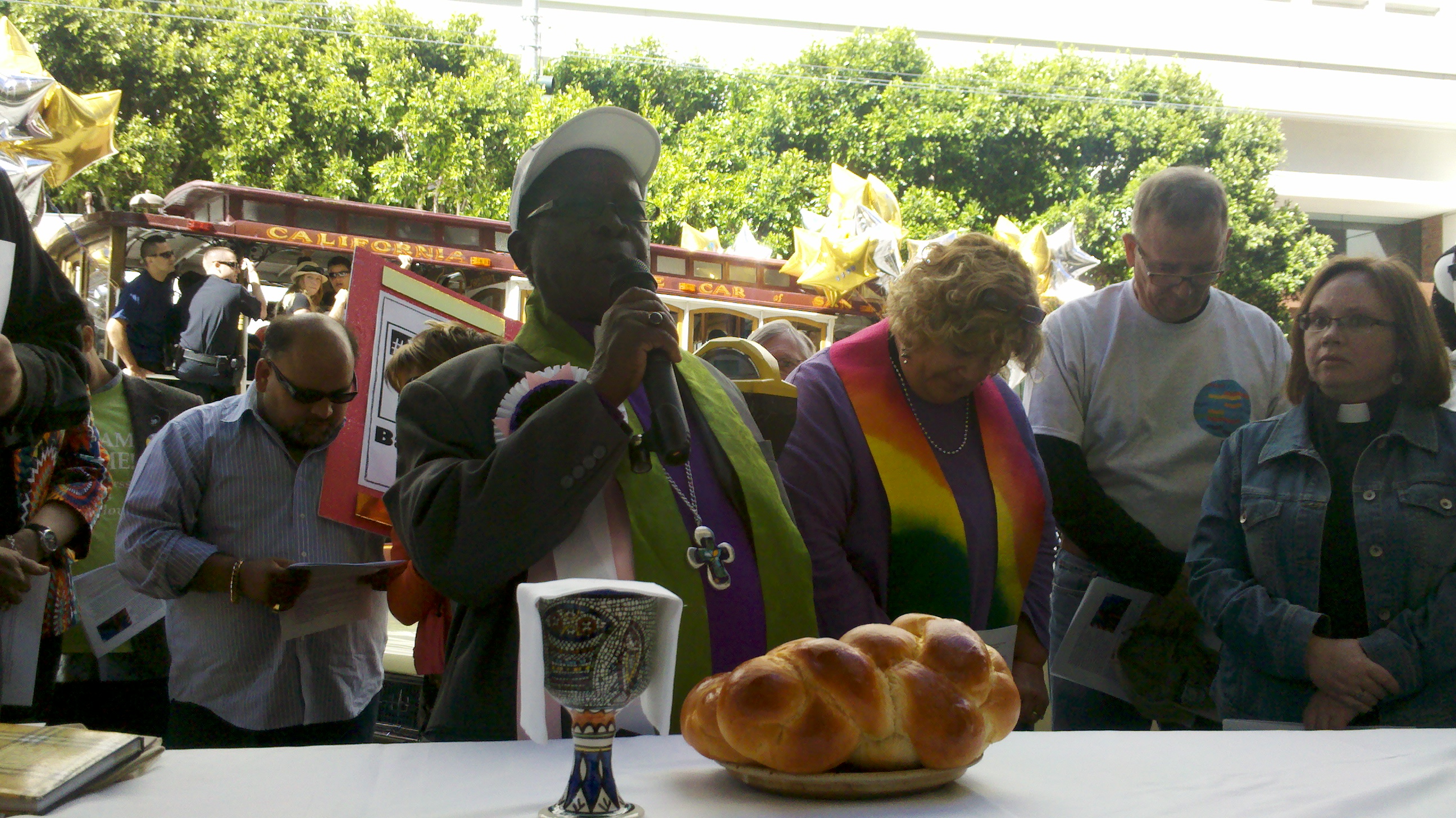 The Bishop kicked off the parade with a moving speech after a Eucharist at Spear and Market attended by scores of clergy from around the Bay Area.