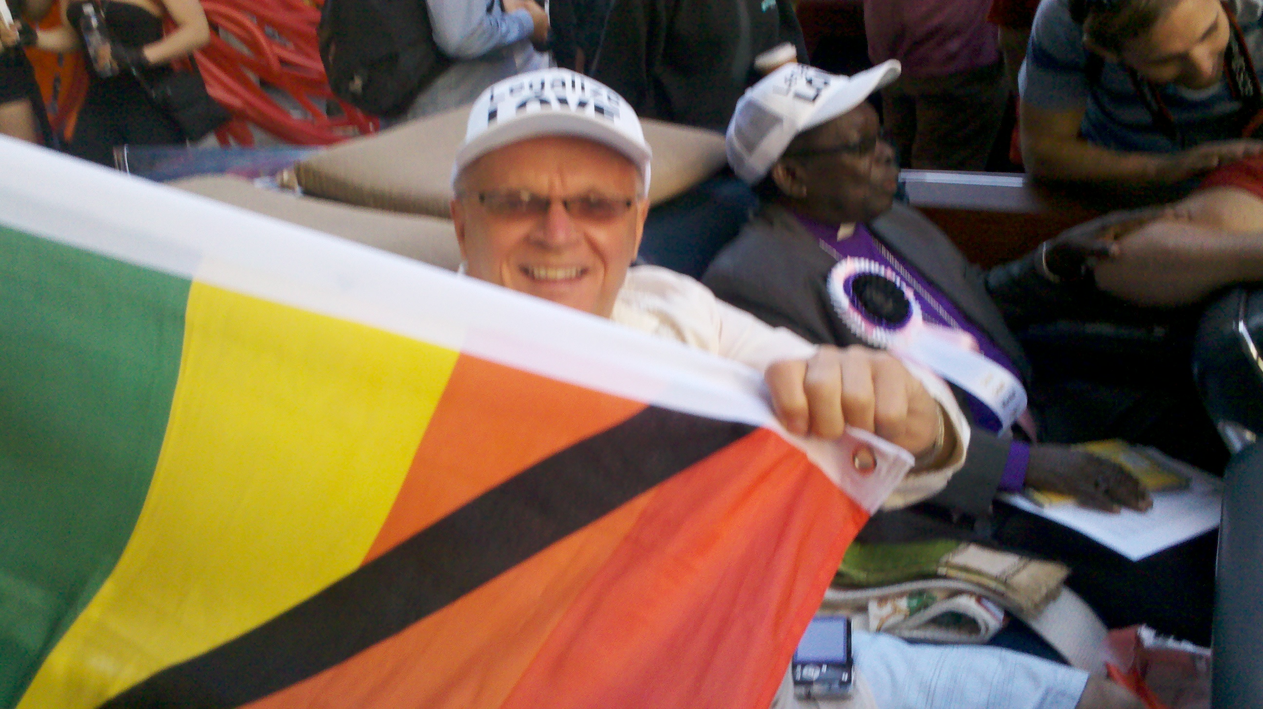 Pictures include Rev. Canon Albert Ogle and Bishop Christopher Senyonjo with the South African Gay Flag.