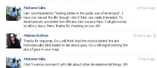 Melanie Nathan –Thanks for response. Do u still think that the motive behind the anti homosexuality bill is based on lies about gays. Do u still regret printing the pics of gays in your mag.