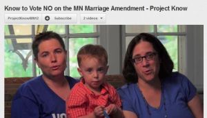 On September 4th, Project Know released a video featuring a community of partners, parents and grandparents sharing why voting NO supports ALL families. They argue for strong family values and for the need to create a welcoming and supportive environment for all Minnesota families,regardless of type of family. They are hoping that their commercial video will spread virally through social media, e-mail blasts and newsletters to help defeat that the Minnesota Marriage Amendment.