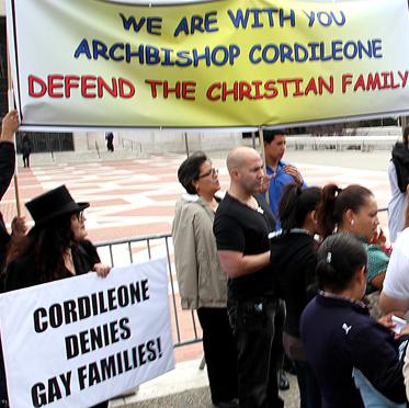 Oakland Bishop Salvatore Cordileone was one of the major voices in the campaign to pass the discriminatory Proposition 8 in California. He is the head of the United States Conference of Catholic Bishops Committee for the Defense of Marriage, whose purpose has been to “defend” marriage from inclusion of loving and committed gay couples. He is not only a man of the cloth as he boasts a connection to radical-right political partners such as the National Organization for Marriage (NOM) and Focus on the Family. The Catholic Bishops have also provided testimony to the Senate Judiciary Committee urging Congress to exclude binational same-sex couples from their rights to green cards.