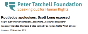 At the time of writing the Iran essay, Mr Long was Director of the LGBT (lesbian, gay, bisexual and transgender) programme at Human Rights Watch (HRW). He left HRW in 2010 soon after he was forced by them to apologise for his personal attacks on Peter Tatchell.