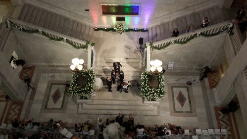 The smooth well orchestrated program, consisting of speeches and entertainment, took place in the beautiful and historic Minneapolis City Hall Rotunda, one of Minneapolis’ most sought-after venues for weddings, as a thousand enthusiastic guests turned out to celebrate, in an atmosphere charged with joyous celebration.