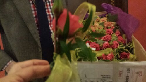 Roses from Senator Al Franken with a note to all couples saying this is what he gives his wife Franni every anniversary for a gift