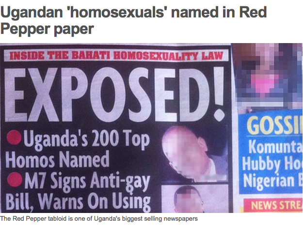Red Pepper OUT perceived Gays now WANTED for Persecution in the International Criminal Arena By Melanie Nathan, February 25, 2014. On the very day that the President of Uganda, Yoweri Museveni, assented to the Anti-homosexuality Bill, the publishers, staff and editors of Red Pepper Tabloid, Uganda, saw fit, yet again, to publish the faces and … Continue reading Ugandan Red Pepper Editors and Staff Persecutors of Gays