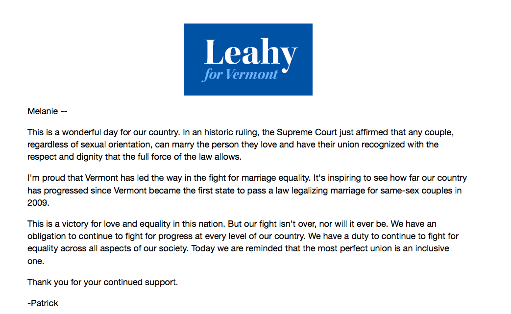 We are all created equal. progress often comes in small increments. Sometimes days like this when that small steady effort is rewarded with justice. The SCOTUS recognizes that the Constitution guarantees equal marriage. This ruling recognizes that people should be treated equally regardless of who they are or who they love. This will end the patchwork and uncertainty. This will strengthen our community.
