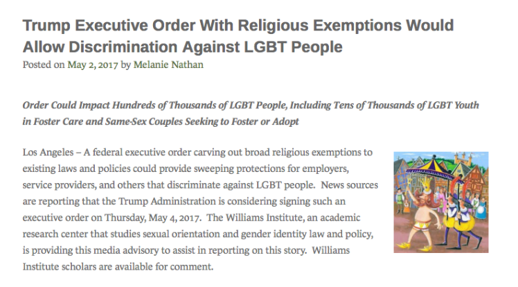 Such an executive order is not about religious freedom, but rather about political exemptions. Exempting people from the Constitution is unAmerican!!. This would be the most damaging executive order ever signed by an American President. However we will #RESIST and we will fight for our rights and the Courts will continue to overturn Trump’s inane overreaches.