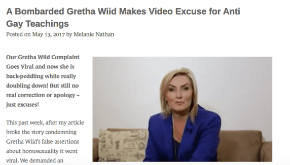 Meet Gretha Wiid: I found her through my naive reflection after reading one page of her writings where she reflected on homosexuality with cruel ignorance and dangerous dishonesty. That one page of myth which happened to come my way spurred my concern – because I know it to be harmful, used to stigmatize – and I see her motive as one of financial gain, at the emotional expense of so many.