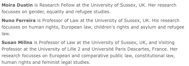 Editors: Dustin, Moira, Ferreira, Nuno, Millns, Susan (Eds.)