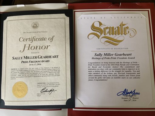 It is Pride month. This year San Francisco Pride’s theme is Generations of Resistance. In 2017 San Francisco Pride honored Sally Miller Gearhart with a long overdue Heritage of Pride, Pride Freedom Award. Now Sally shines in a new documentary directed by Deborah Craig, which is critical, not only to Sally’s legacy, it is also important for us all as we strive to honor our elders, our courageous pioneers as well as work to reclaim and assert our heritage and spaces.