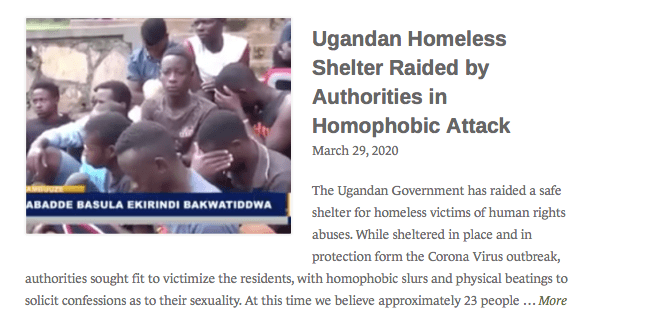Following my post yesterday ( referenced below) where Ugandan authorities raided a homeless shelter, beating people and threatening beatings in exchange for confessions as to sexuality, reflects not only an abuse of basic human rights, but also an insidious and opportunistic excuse to cite COVID-19 as a justification to victimize the most vulnerable. As well as noting the myriad of other ongoing human rights abuses COVID-19 has added to the Ugandan landscape, here is a statement by HRAPF, a human rights organization based in Kampala, reflecting on the issues, making the case for upholding human rights and dignity for all and considering the needs of the poorest and most marginalized during the Corona virus outbreak: