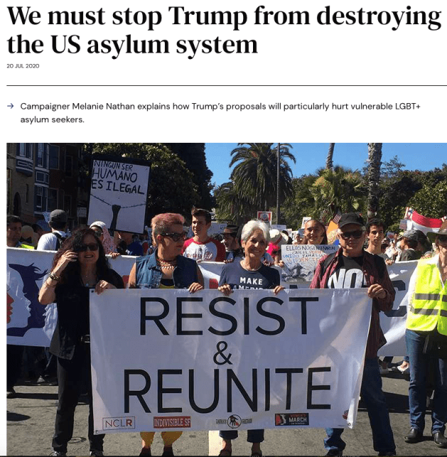In his 2016 election campaign, Donald Trump claimed Mexico was offloading ‘rapists’ at the border. And he vowed his administration would no longer accept this. Four years later, his trajectory of scapegoating and lies has yielded the Department of Homeland Security and the Executive Office of Immigration Review’s new rule. This rule effectively destroys the asylum process in the United States. It is so cruel, especially with regard to its impact on LGBT+ asylum seekers, that it must be fought with great vigor.