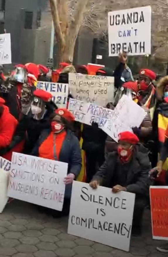 Today multiple protests broke out around the world, including New York City, where a robust group of Ugandan expats, political asylums, other exiles, and supporters called upon the World to take action, and to pursue sanctions against Museveni’s regime. One anonymous protestor told me: ” We do not want to cause any more pain to our people at home, but we know they will support whatever measures are necessary to bring the rule of Museveni to an end and instate the proper president who we believe won the election. We are for the people and we want change.”