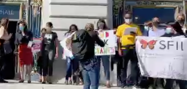 Today asylum seekers, advocates, and allies rallied on the steps of San Francisco City Hall demanding an end to Title 42 expulsions and other policies that harm Black people seeking safety in the United States. The groups gathered as part of a National Day of Protest in defense of Black immigrants called by the Haitian Bridge Alliance, Black Alliance for Just Immigration, and UndocuBlack Network.