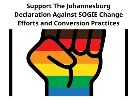 The Johannesburg Declaration Against SOGIE Change Efforts and Conversion Practices:We, the undersigned mental health professionals from across Africa who attended the convening