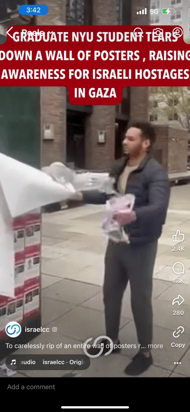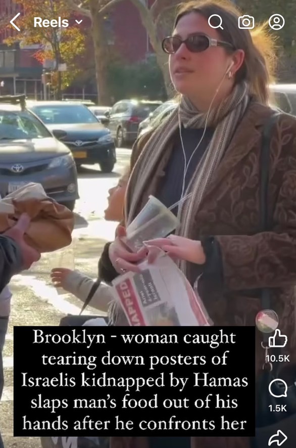 I have decided to collect the faces of the scum that would do this – so they can reside in one place, in infamy – forever googled by prospective employers, customers and those of you seeking services – or perhaps that falafel from the corner vendor. Maybe this is your hair stylist or your law clerk? Take a peak…This is not intended to hurt anyone but rather as a caveat emtor. Buyer beware – you are entitled to know that these people have publicly ripped up posters of Israeli and Jewish hostages.
