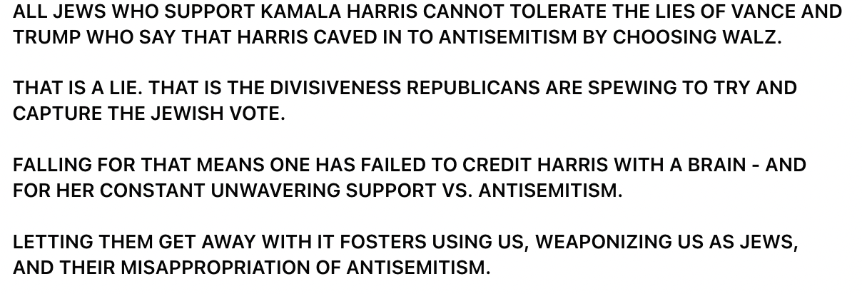 What makes this choice by VP Harris even more brilliant – in my opinion – is it took the eye off the ball by those in the Muslim community who are anti-Israel. They were so invested in cancelling Josh that they didn’t even notice (and still do not notice) that other than not being Jewish, Tim is no different to Josh on the issues of Israel and antisemitism.