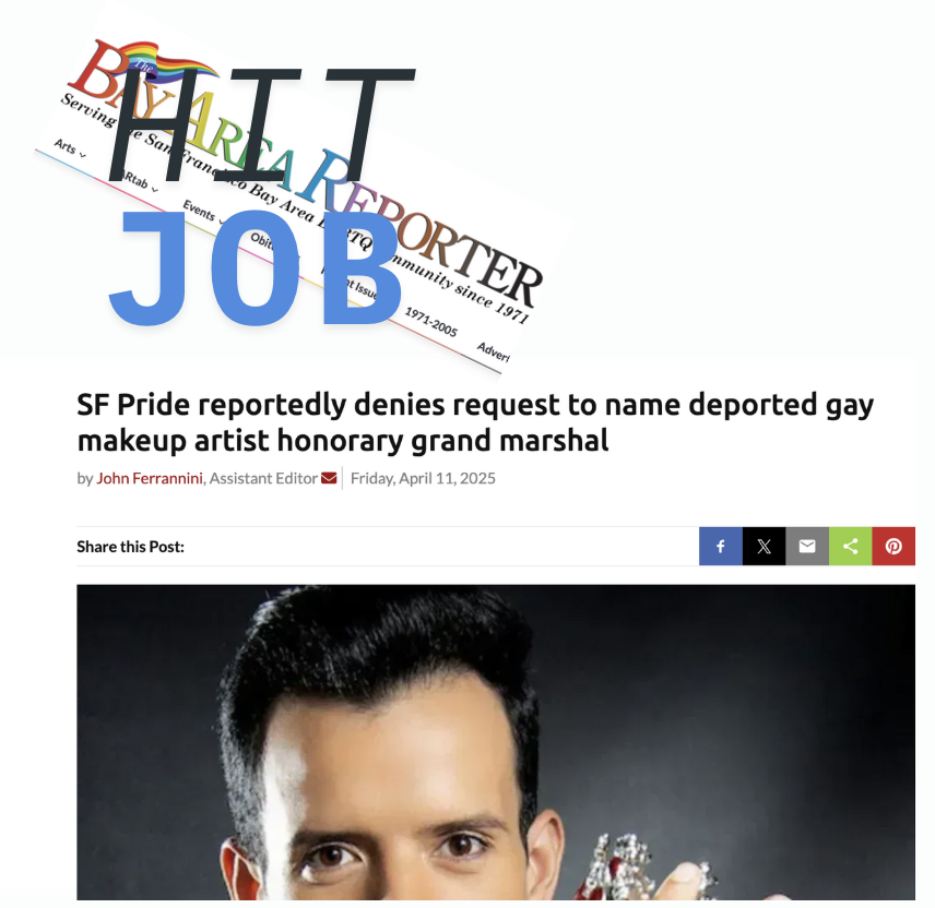 The San Francisco based Bay Area Reporter, published “SF Pride reportedly denies request to name deported gay makeup artist honorary grand marshal” by John Ferrannini, Assistant Editor , Friday, April 11, 2025. Dramatic headline for a big non-drama that became a big drama on demand! Why am I not surprised when a salivating assistant editor at Bay Area Reporter meets the moment by indulging in a divisive hit job. A parasitic synergy born from entitled tantrum meeting scandal thriving tabloid. The fact that some activists express pain and hurt when SF Pride refused to bow to their dangerous and unschooled demands should not have turned into a drama…but alas, par for the course… and more importantly as this post will reveal, activists and Prides must adopt a ‘do no harm’ policy when it comes to matters of sensitivity, by at the very least consulting the experts,