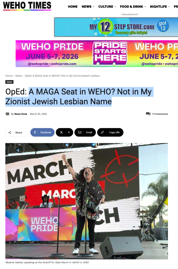 Tanya Tsikanovsky, who brands herself as “highlyjewish,” is seeking a seat on West Hollywood’s City Council, a role that demands moral clarity, historical awareness, and a commitment to protecting the vulnerable. My message is: Identity is not qualification, and leadership in West Hollywood insists on judgment grounded in morality and maturity.