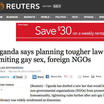 A new approach to a NEW Anti-Homosexuality Act (AHA) which seems to stem from the NRM and Museveni’s fear of more international reprisal and rulings of unconstitutionality. By Melanie Nathan, August 12, 2014. From what I can gather, in Uganda, the State will halt its appeal in an attempt to reverse the decision that the … More Uganda to Halt Court Appeal against the Ruling that the Anti-Homosexuality Act is Invalid